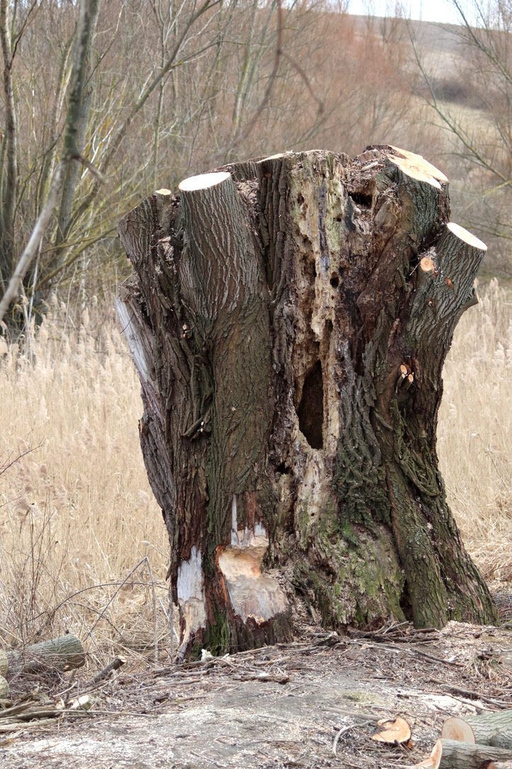 alte Kopfweide mit Biberspuren